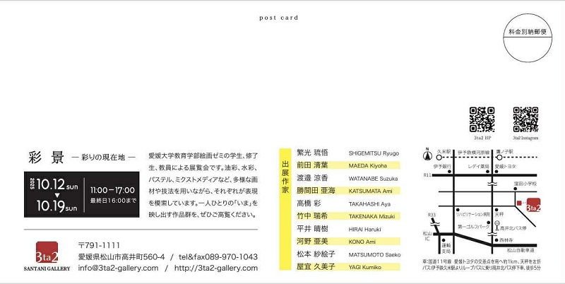 愛媛大学教育学部絵画ゼミの学生、修了生、教員による展覧会です。